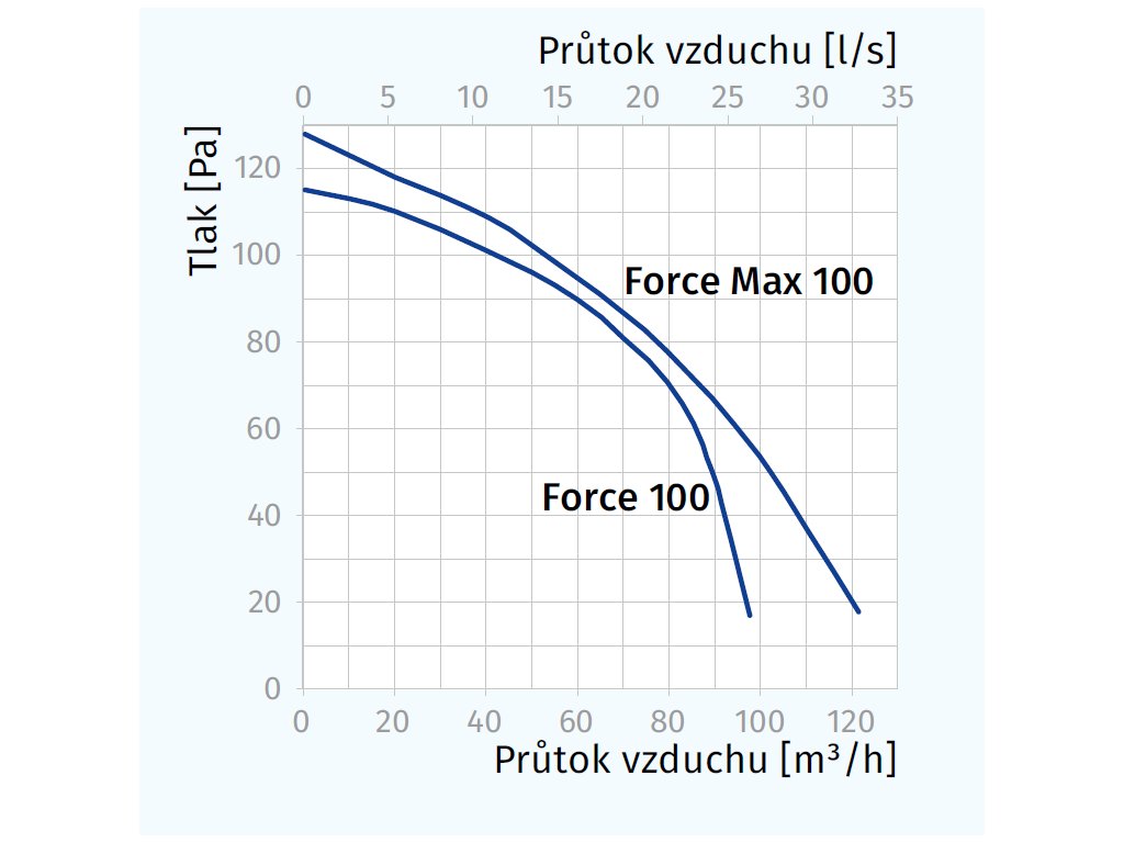 - Radiální oběžné kolo s dopředu zakřivenými lopatkami zajišťuje vysoký tlak